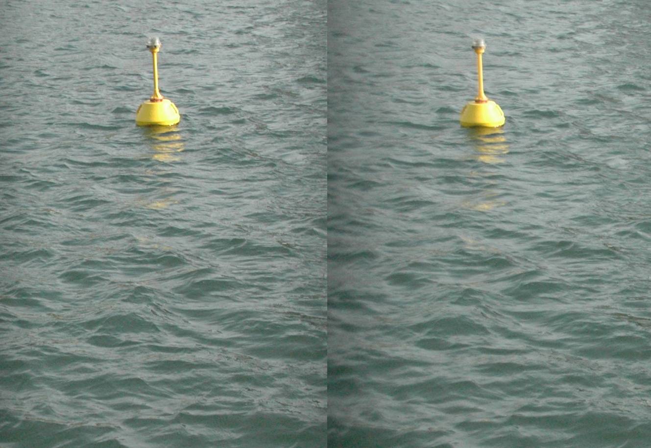 指を前後させると、輪の中の写真のブイや炎がひとつに見える位置があります。(視線は指のままで!)